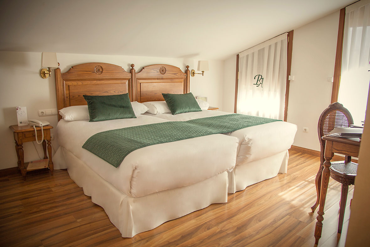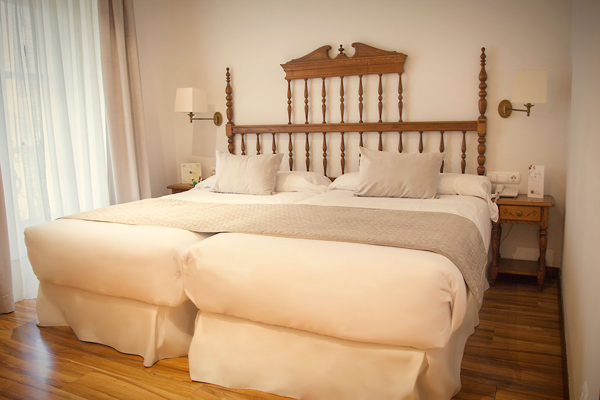 En Hotel Palacio Azcárate disponemos de habitaciones espaciosas y luminosas. Algunas cuentan con un balcón, con una mesa y dos sillas. Disponen de dos camas individuales o cama de matrimonio (sujeto a disponibilidad), televisión, Wi-Fi gratuito, baño privado con ducha o bañera y secador de pelo. Incluye servicio de caja fuerte y minibar (a excepción de 208 y 209).